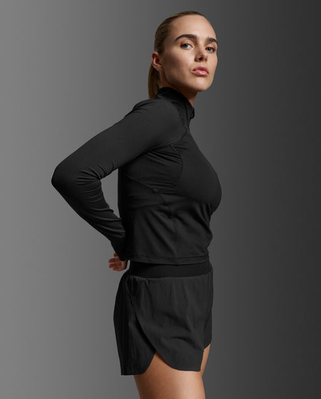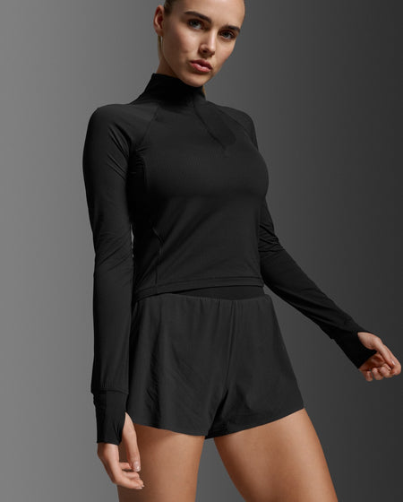 Womens Aero Waffle 1/2 Zip Laufshirt Damen - black/silver reflective