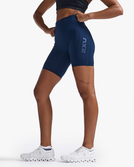 Die 2XU Womens Form Stash Hi-Rise Bike Short ist die perfekte Wahl für anspruchsvolle Radsportlerinnen. Die Kurzshorts besticht durch ihr modernes Design und ihre hochwertige Verarbeitung. Sie besteht aus einem elastischen Material, das sich optimal an den Körper anpasst und einen hohen Tragekomfort bietet. Dank des hohen Bunds sitzt die Shorts sicher und rutscht nicht während der Fahrt. Zudem verfügt sie über praktische Stauräume, in denen kleinere Gegenstände wie Schlüssel oder Energieriegel verstaut werden können.